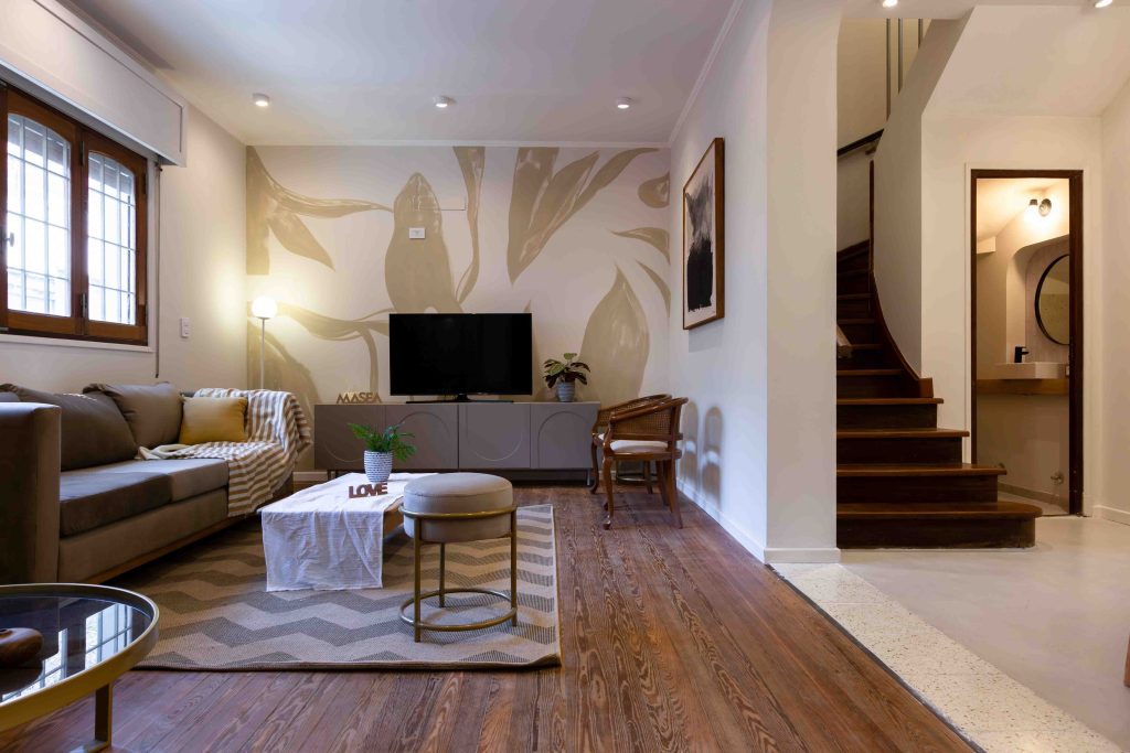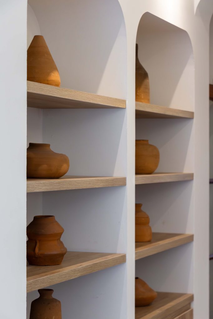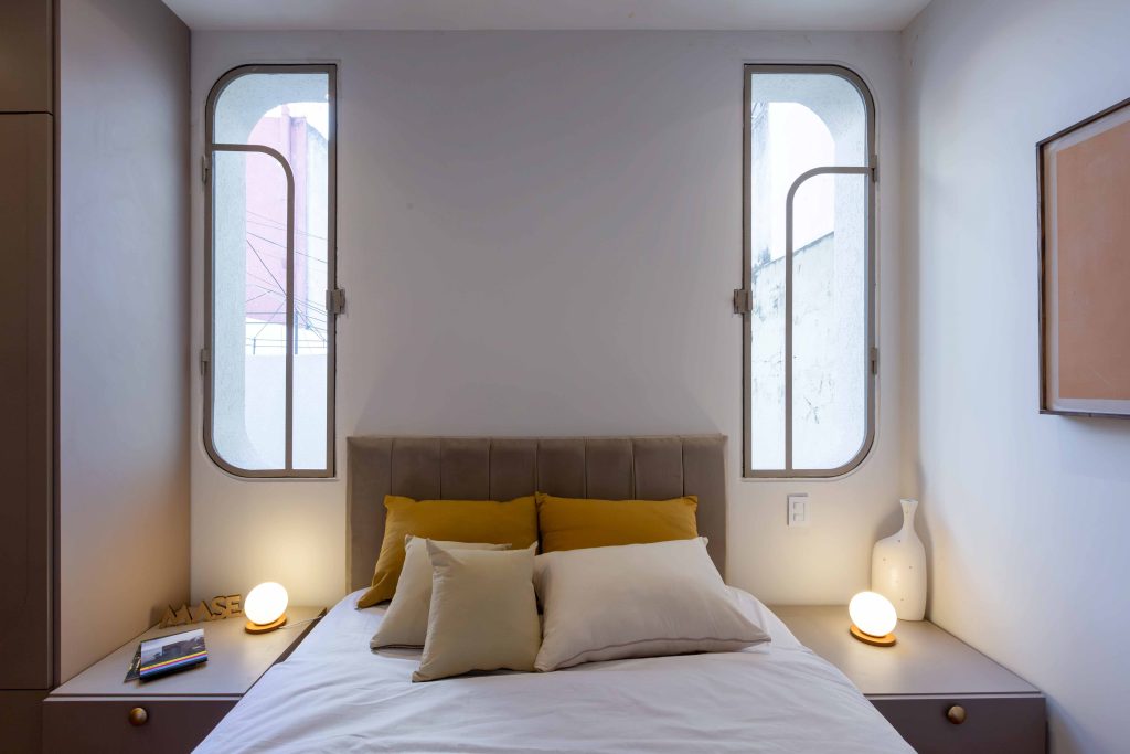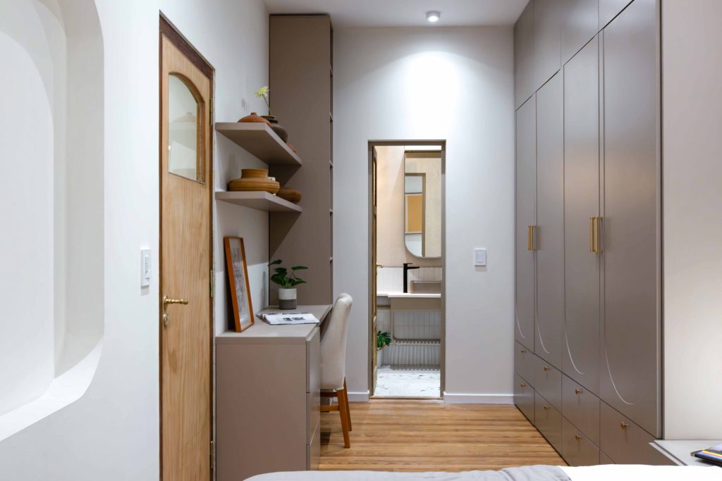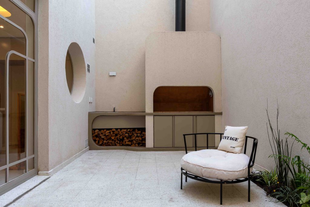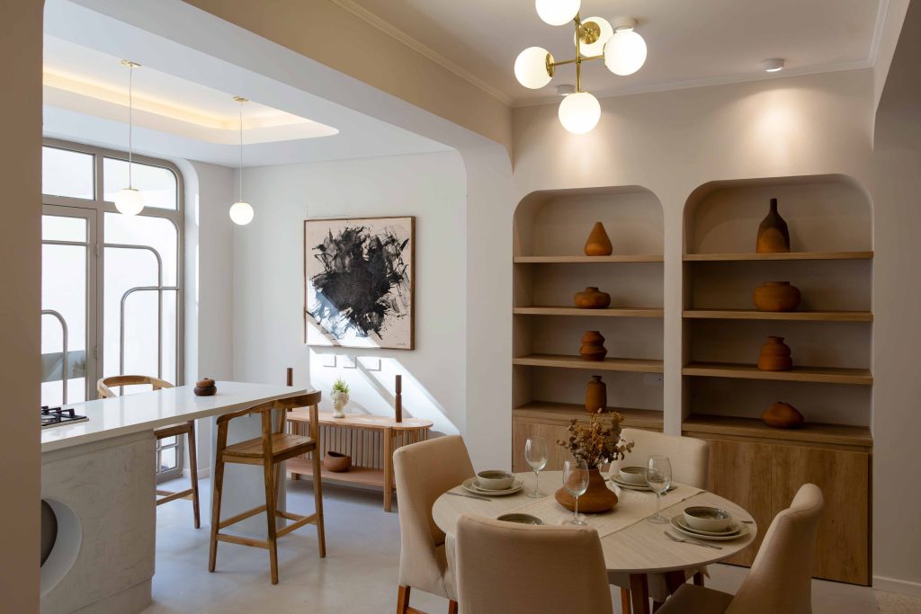 En cuanto al estilo, el enfoque fue incorporar detalles del Art Decó, utilizando formas geométricas para diseñar ventanas y vanos, así como buscar simetría y líneas curvas en el diseño. La paleta de colores elegida es sobria, con tonos cálidos predominantes, materiales como la madera y el hierro, y detalles en tonalidades beige que complementan la estética.